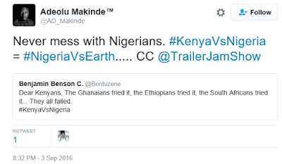These tweets are brutal! Nigerians and Kenyans first started the war when Facebook founder, Mark Zuckerberg visited both countries but the war continued yesterday with the hashtag KenyanVsNigeria. Former President Obasanjo, Tiwa Savage, Basketmouth and a host of other Nigerians got involved in the war, lol. More tweets after the cut…