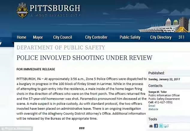 After the traumatic moment Richmond ran away to a window. She said: When the police came in, I was gonna jump (from the roof) but the police told me “Don’t jump.” I was screaming, “I’m a victim. Don’t shoot me. I’m on the phone with 911.”‘ The officers involved in the incident have been placed on administrative leave while investigations continue. In a statement, Pittsburgh police said: ‘As with standard protocol, the two officers involved have been placed on administrative leave.’