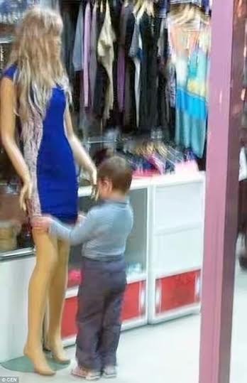One little guy was so filled with curiosity at whether a mannequin had a pee pee just like his, he decided to check it out for himself. He proceeded to take a peek and stick his hand up its skirt.
