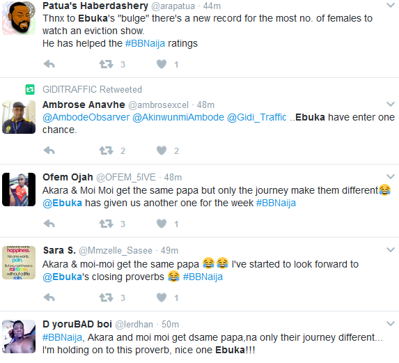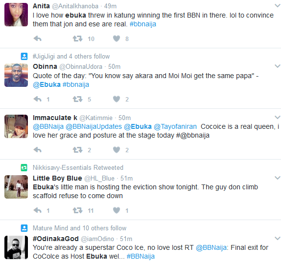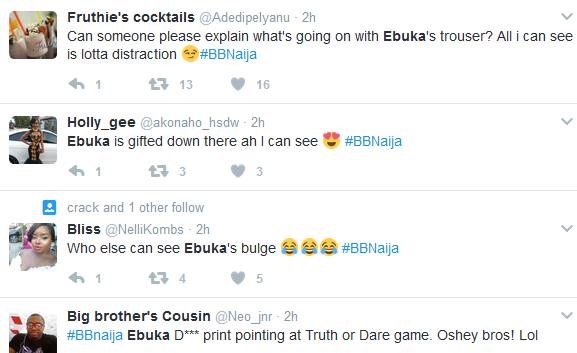 Ebuka Obi-Uchendu was the number trending topic on Twitter yesterday evening after he came on stage to host the Big Brother Naija with a huge bulge. It gave people something to talk about on Twitter. See the tweets after the cut…
