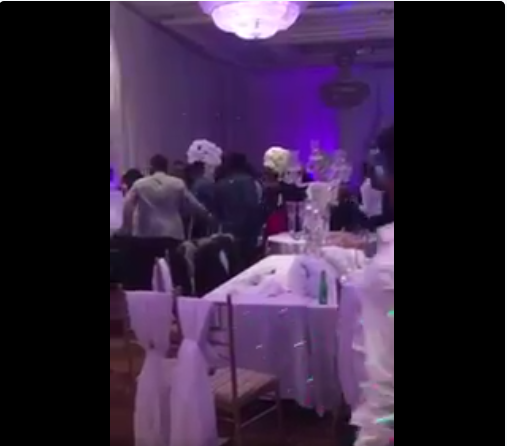 According to the twitter user, King Savage who shared the photos, a fight broke out at a wedding reception after the bride’s ex shared photos of her giving him a blow job to the guests. This happened at Wakefield, England.