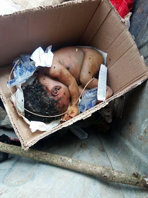 “Last night, someone dumped this new born baby inside a dustbin at Etta Agbor layout beside Unical hotel Road. The baby was in the rain throughout last night till this morning. Ladies, if you know that you won’t be able to handle the responsibility of having a baby, pls don’t go where they are. Get protected to avoid killing innocent destiny. May God forgive us. Amen”. See graphic photo of the baby after the cut…