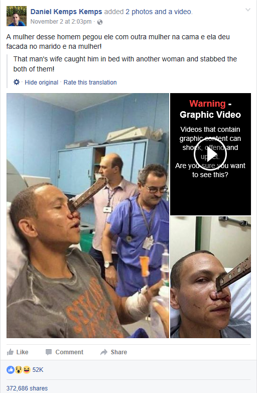 A Facebook user, Daniel Kemps Kemps, shared a graphic video of a man and a woman who were allegedly stabbed by the man’s wife after she caught her husband in bed with the woman above. Looks so unreal! He wrote:
