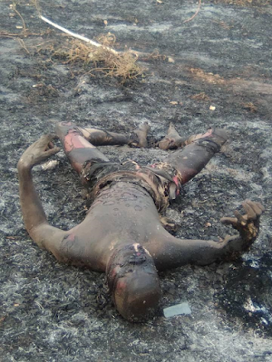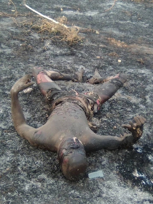 An unidentified man was set ablaze last night beside Agro Mills, North Bank Makurdi, Benue State. The man reportedly stole a motorcycle that belonged to a motorcyclist popularly known as ‘Okada’. More photos after the cut…