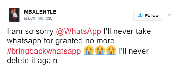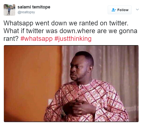 Last night, May 4, 2017, popular messaging app, WhatsApp had technical issues and was offline for over 2-hours in some parts of the world. It was unprecedented, no one saw it coming and the world panicked. The service has since been restored and WhatsApp is yet to make an official statement as to what led to the sudden crash of the app. Read some more reactions after the cut..