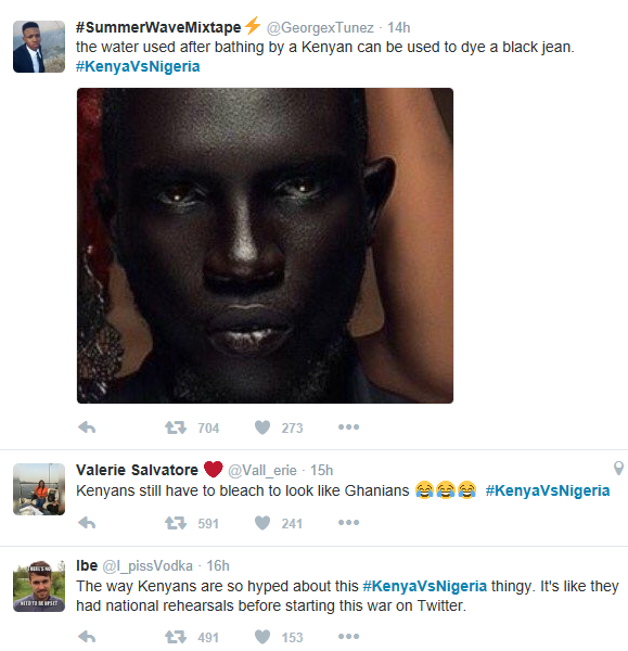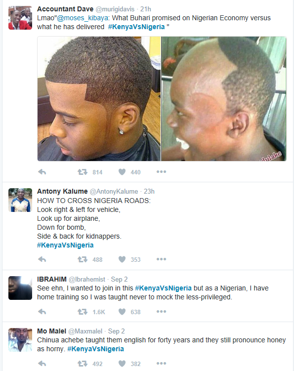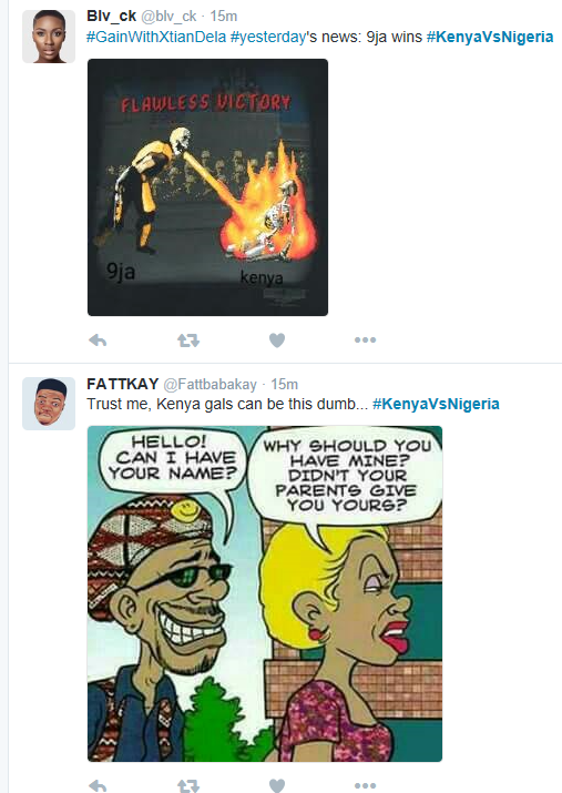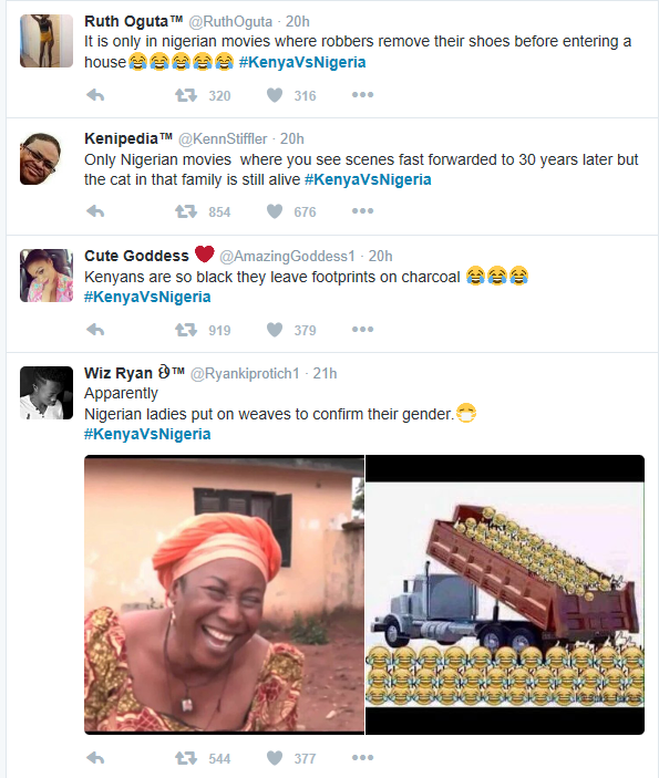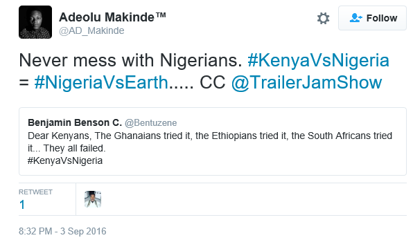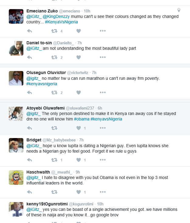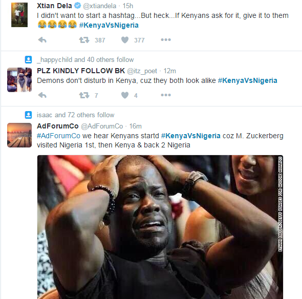 These tweets are brutal! Nigerians and Kenyans first started the war when Facebook founder, Mark Zuckerberg visited both countries but the war continued yesterday with the hashtag KenyanVsNigeria. Former President Obasanjo, Tiwa Savage, Basketmouth and a host of other Nigerians got involved in the war, lol. More tweets after the cut…
