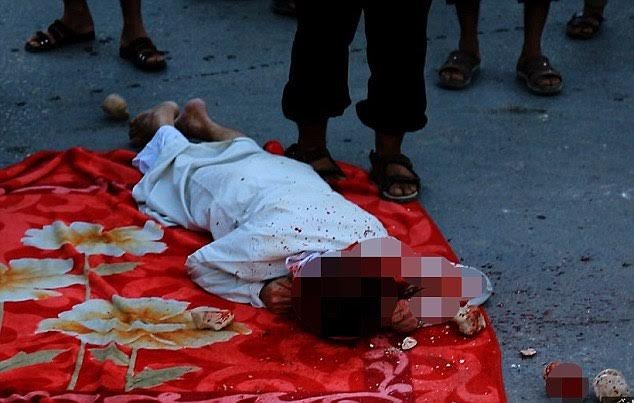 ISIS executioners took one of the most brutal decisions by stoning two men to death after they were reportedly accused of adultery in Syria. The brutal killing saw over hundreds of people, including children gathered at the city of Abu Kamal, to witness the execution of the victims being stoned with heavy rocks. More photos after the cut.
