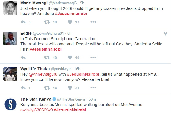 But it just couldn’t end too soon, as Kenyans on Twitter created an #Jesusinnairobi to poke fun, with some even claiming that the ‘Jesus’ lookalike was in Kenya to combat corruption in the country. See their tweets below: