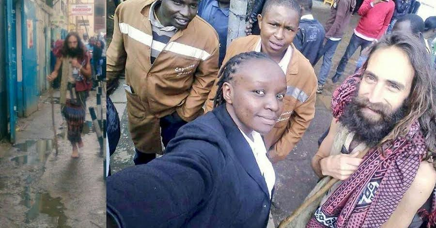 On Wednesday, a white man who has the same resemblance to Jesus Christ of Nazareth was spotted walking barefooted in the downtown Nairobi.