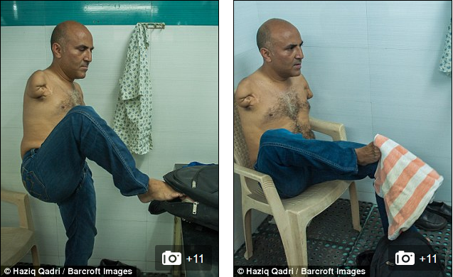 The 45-year-old lost his arms when he accidentally touched a high voltage wire. He says he has taken his disability as ‘a gift’ and has learnt to do basic tasks such as; shave with his feet, operate his phone with his nose, swim; gym every morning and play tennis using his shoulders.