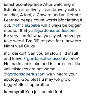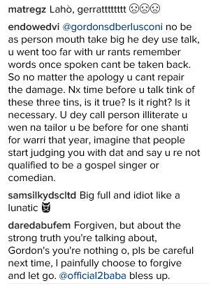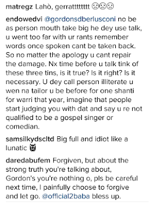 Comedian Gordons took to his IG page to render an apology to 2 Face for calling him an illiterate, but Nigerians were not here for his apology. They all took to his page to blast him. Read the comments after the cut…