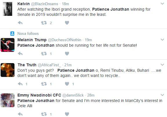 Nigerians react to news of Patience Jonathan likely contesting for senate in 2019