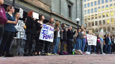 In Portland, Pro-Hillary supporters chanted “No Trump, no KKK, no fascist USA” While Protesters in D.C., who headed to the Trump International Hotel, shouted “No Trump, no KKK”