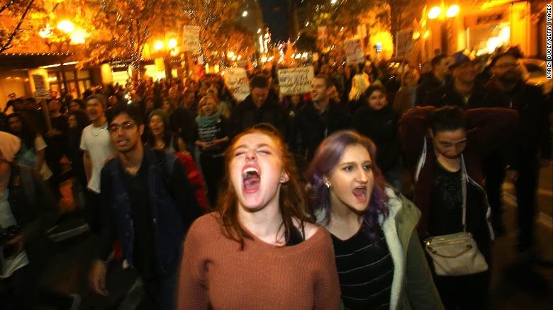 “I will not live in fear,” “Fight back, stand up” and “¡Si se puede!” (Spanish for “It can be done”). People are furious not just at the results of the election, but the rhetoric of Donald Trump,” Ahmed Kanna, an organizer for Social Alternative Berkeley, told CNN’s Don Lemon.