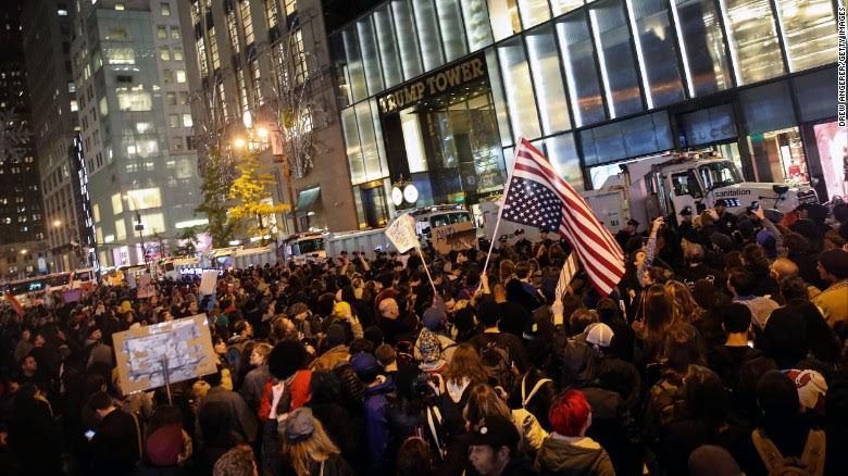 According to the U.S Police, as much as 5000 pro-Hillary supporters took to the streets across the U.S and the White House on Wednesday night to protest against the election of Billionaire business man Donald Trump as the next president of America.