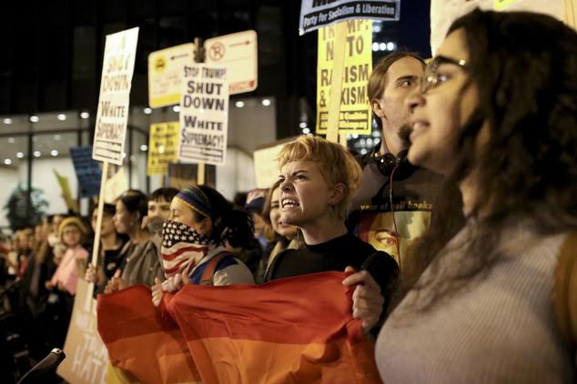 Some protesters who also marched to Trump Towers, New York, including Lady Gaga on Wednesdaynight, yelled about issues such as immigration and other controversial topics from the Republican party campaign.