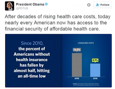 While the President elect kept himself busy by taunting his political foes on twitter, the incumbent president used the same platform to remind America how far they’ve come since they first voted a black man president in 2008. He says his record speaks for itself. No blames or jibes just facts and figures. Read his tweets after the cut..