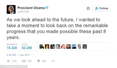 Obama defends his legacy as he looks back on eight long years in series of new year tweets