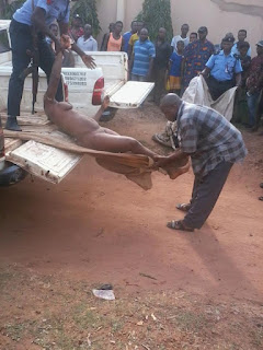 Enugu. The identity of the woman is still unknown but the police have come to remove the body. Find graphic photos of the body after the cut…