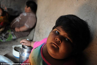 Four-old-daughter Amisha weighs 51 kilos, three times more than an average child her age. Older sister Yogita weighs in at 33.5 kilos while brother Harsh already weighs 16 kilos at 18 months old.