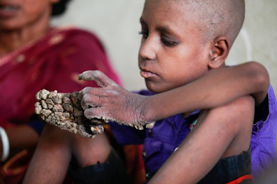 Ripon Sarker is suffering from a rare skin condition caused by human papillomaviruses, an infection which results in the growth of scaly warts.