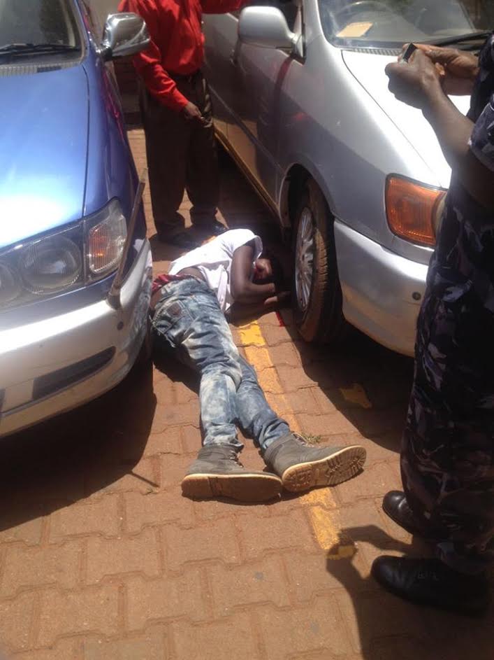 This happened in Uganda this morning. The man tried to commit suicide after he jumped down from a four-storey building known as Garden city in Kampala, Uganda. He however did not die but was rescued by passersby and rushed to the hospital for medical attention. See more photos from the incident after the cut…