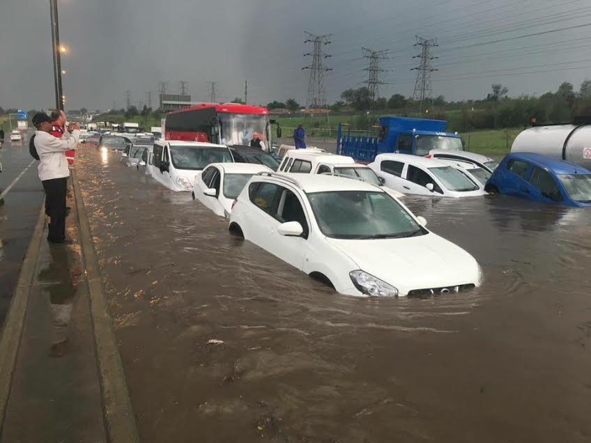 Two people have been confirmed dead with several others declared missing after a flash flood hit the N3 linksfield in Johannesburg, South Africa yesterday evening. No fewer than 70 cars were submerged by the flood. See more photos from the incident after the cut…