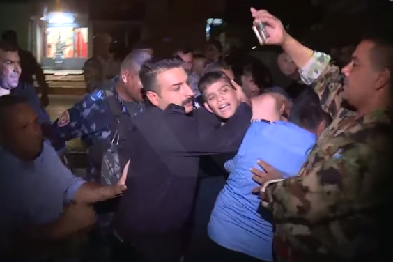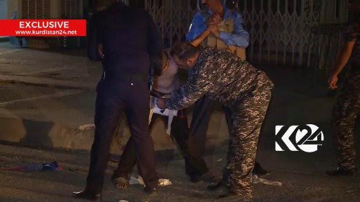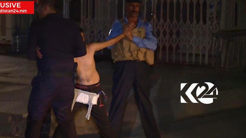 Local television footage aired on Kurdistan 24 TV shows a group of police officers holding the young boy aged about 12 or 13 in a number 10 Lionel Messi jersey, while two men are seen cutting off a belt of explosives. After they remove the belt, the boy is seen being rushed into a police truck and driven away.