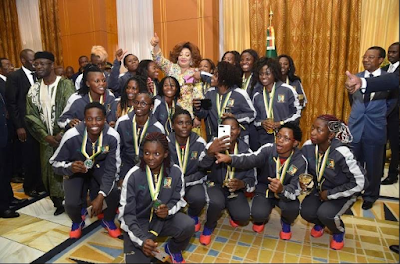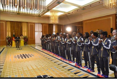 President Biya and Chantal hosted the team and their coaches and staff at the Unity Palace, on Thursday, December 8th, for a dinner in honor of their brilliant performance at the recent AWCON games.