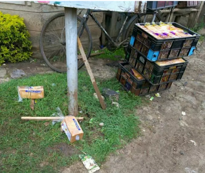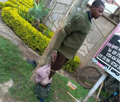 On a faithful day, the unidentified kiosk owner placed the crates at a strategy place and waited to see who has been cheating on him, but to his surprise, it was his watchman coming to steal the bread. As soon as he had picked the loaves, locals emerged from on where to descend on him before tying him to a pole.