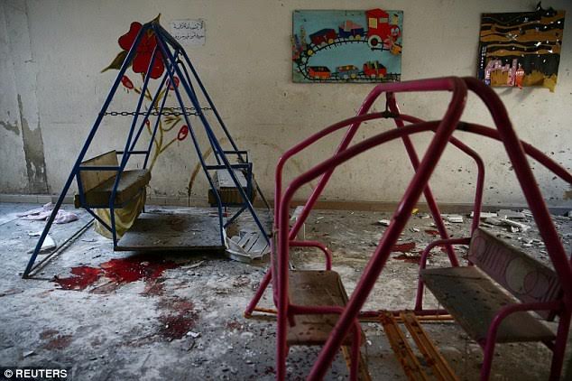 Photos from the scene show the environment splattered with blood. The young children rescued where covered in blood and their toys left strewn across the floor.