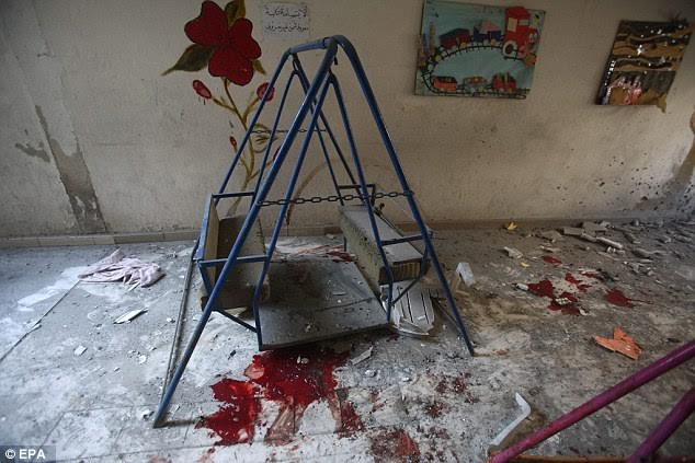 The children were peacefully playing during their first break of the day when government forces launched mortar rounds at the kindergarten, which is located in the rebel-held city of Harasta, a rural suburb of the country’s capital, Damascus.