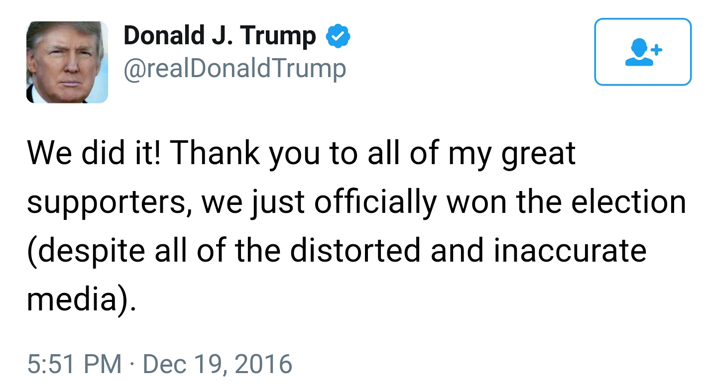 He got 304 votes surpassing the 270 votes needed to secure his presidency.