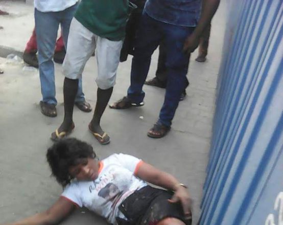 The horrific incident happened last Saturday morning at Mile 2 Junction, Lagos. There was an earlier report that the young woman’s legs were crushed when a container fell on her as she was about to board a motorcycle. People came to her rescue but couldn’t lift the container as it had heavy load inside. They reportedly cut off both legs and rushed her to the hospital. We initially heard she died on her way to the hospital but a doctor at LUTH told LIB that the lady is not dead but in ICU at LUTH. This we can’t confirm. See photos from the horrific accident after the cut…