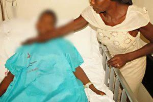 Giving a chilling account from her hospital bed, the traumatized young woman said the assailants, who she identified as Kirenje and Otii, first raped her in turns, then hacked her with a machete just next to her private parts, before they tied her legs across the railway line and abandoned her to be crashed by a train.