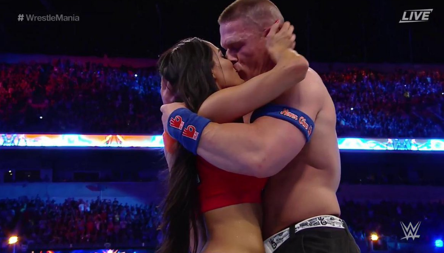 The proposal happened in the middle of the ring at WrestleMania after Cena and Bella beat The Miz and Maryse in a mixed tag team match on Sunday.